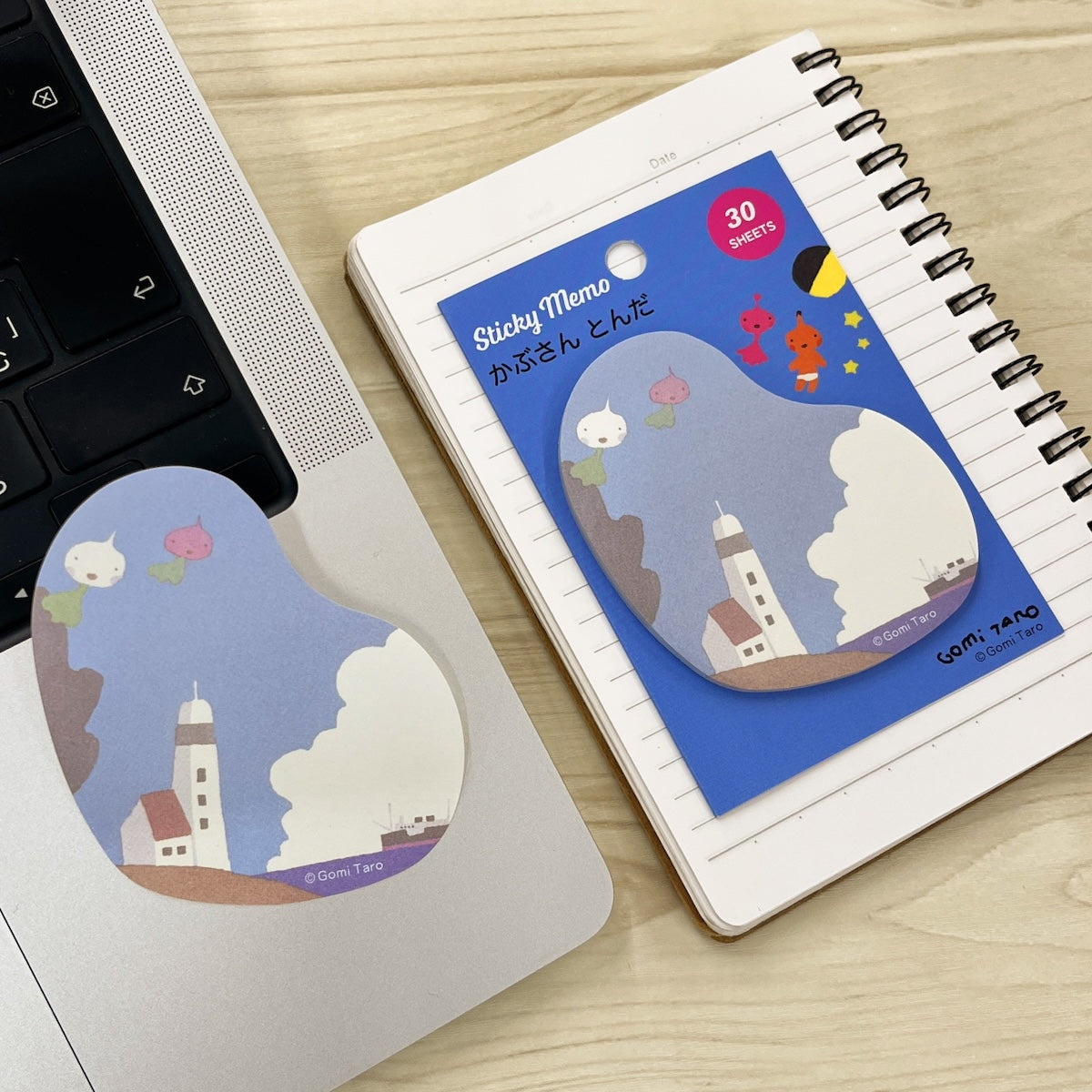 『かぶさんとんだ』のワンシーンのダイカット付箋です。おすそ分けやお土産にひとことメッセージを添えたり、ちょこっとメモしてデスクに貼ったり、TODOメモを書いて手帳に貼ったり…いろんなシーンで便利に楽しく使えます。※のりの位置は下側です。30枚入り