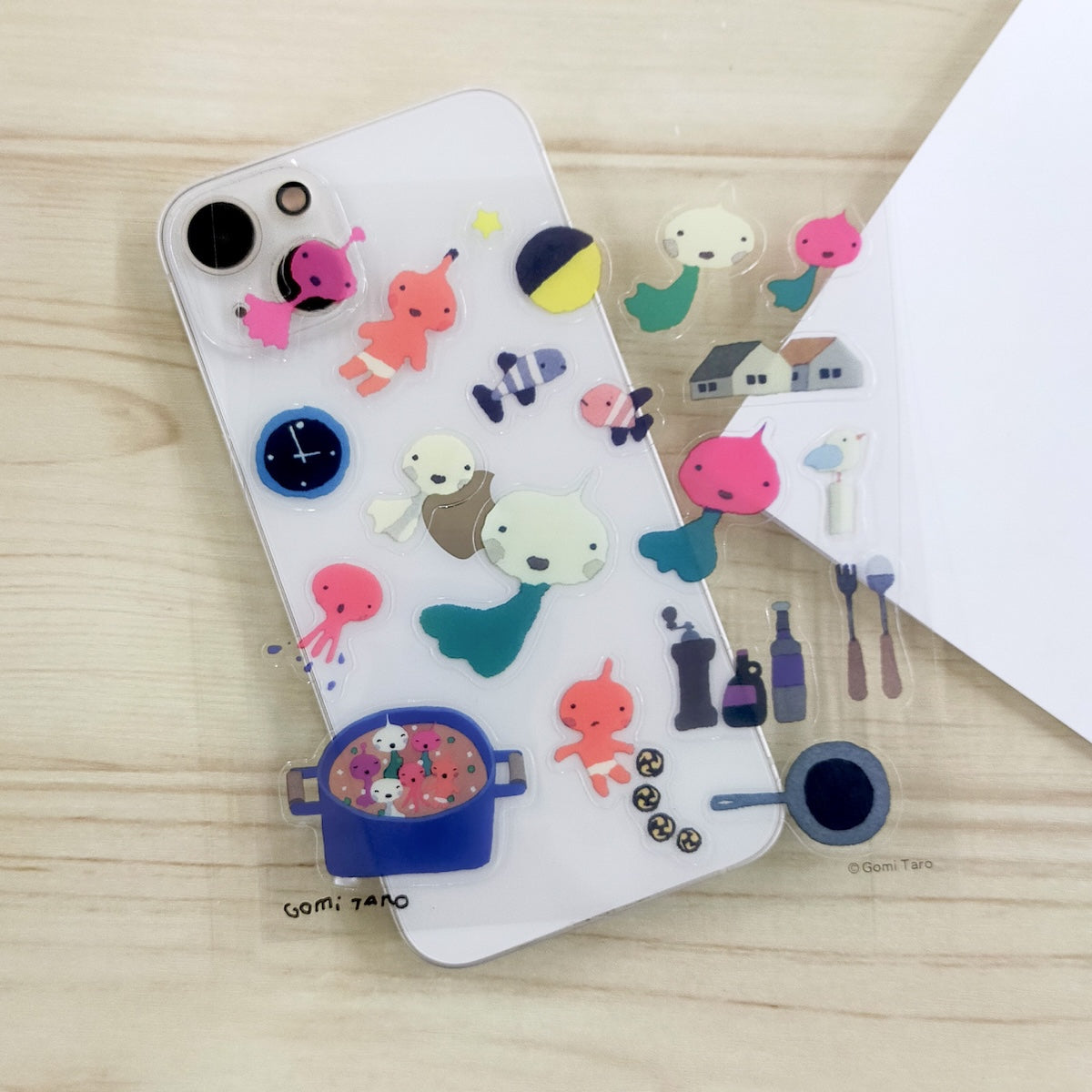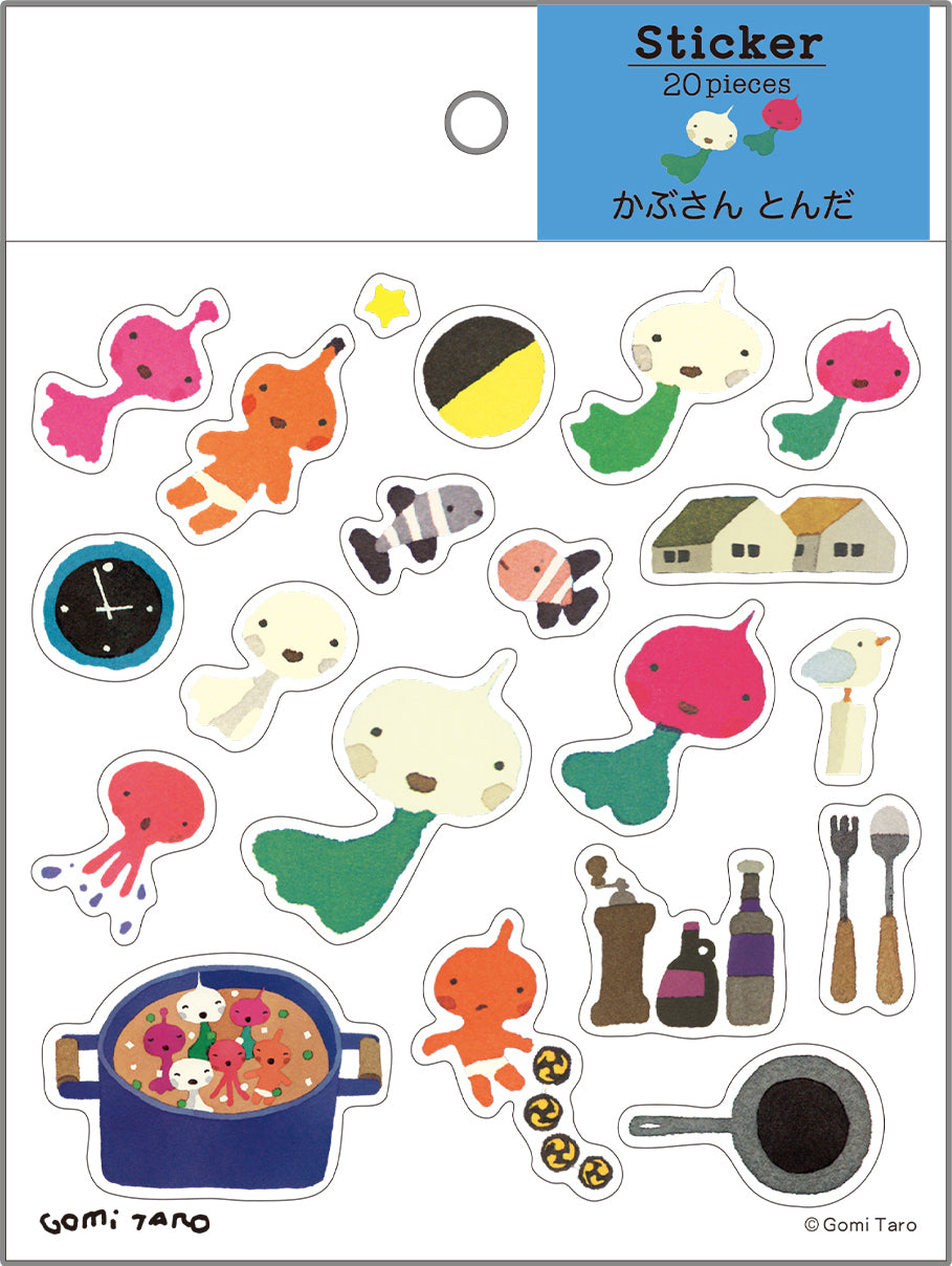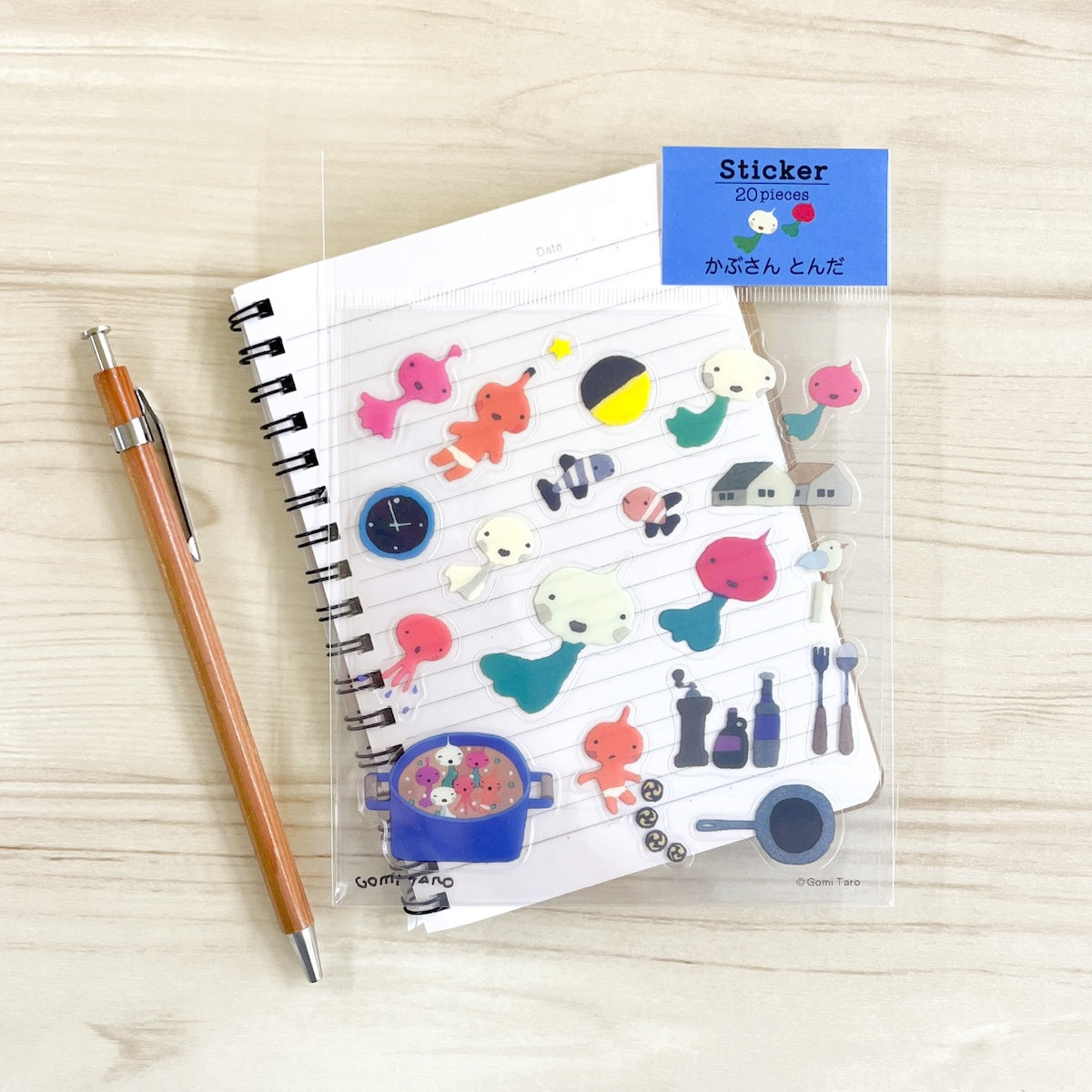 『かぶさん』のカラフルでポップな透明シール。透明なので、本体の色を生かして色々なものをデコレーションできます。カラーペンやマスキングテープの上に貼ると、さらに華やかに!20枚入り
