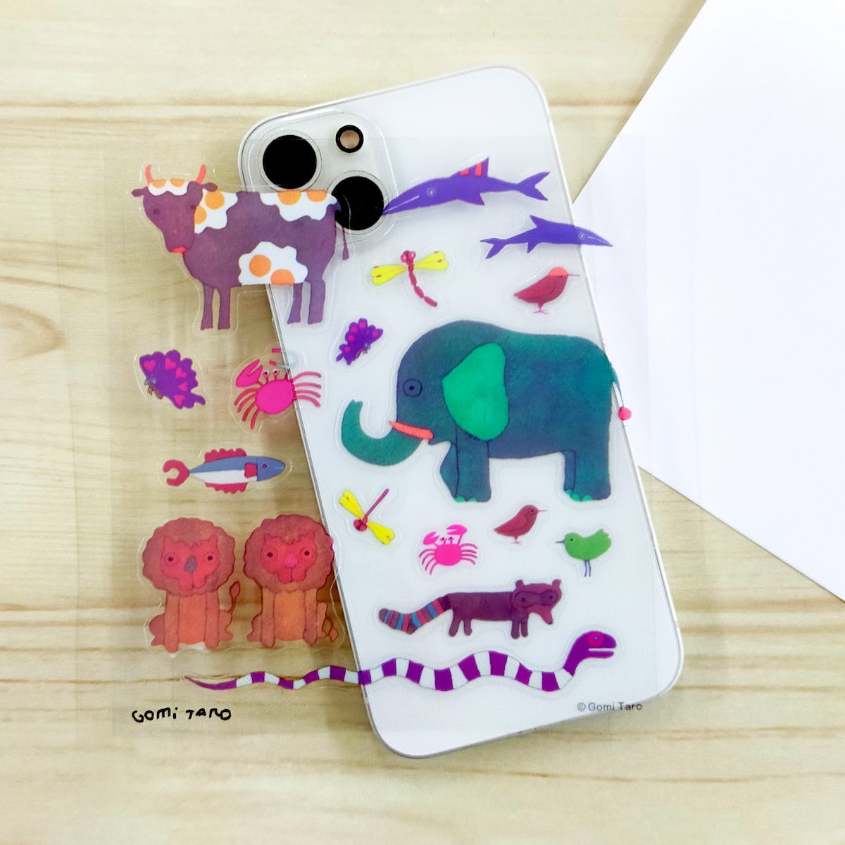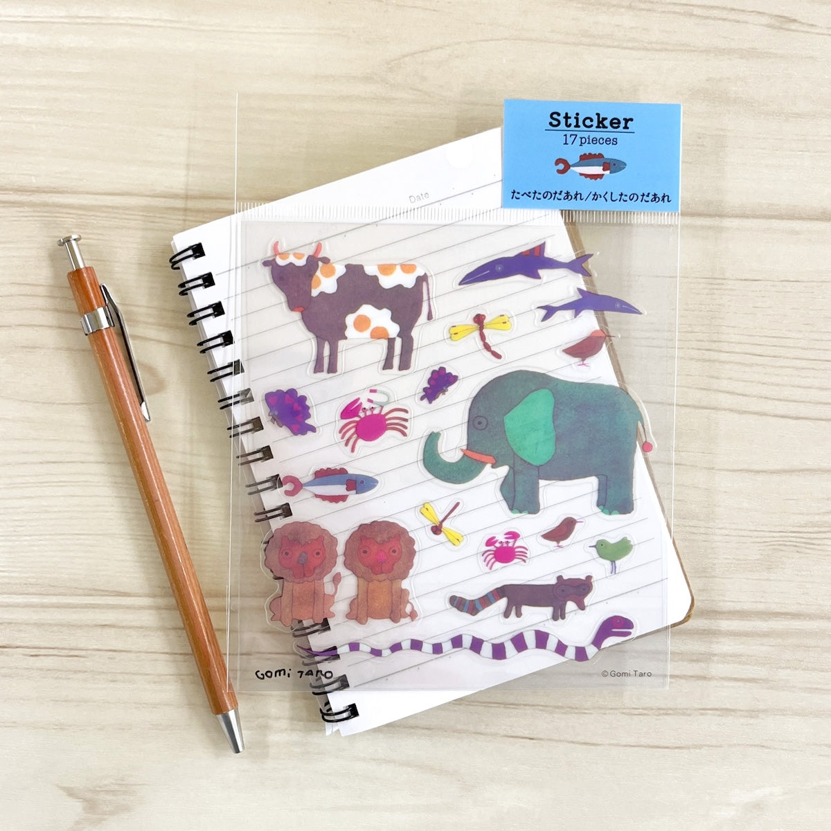 『かくしたのだあれ』『たべたのだあれ』のカラフルでポップな透明シール。透明なので、本体の色を生かして色々なものをデコレーションできます。カラーペンやマスキングテープの上に貼ると、さらに華やかに!17枚入り
