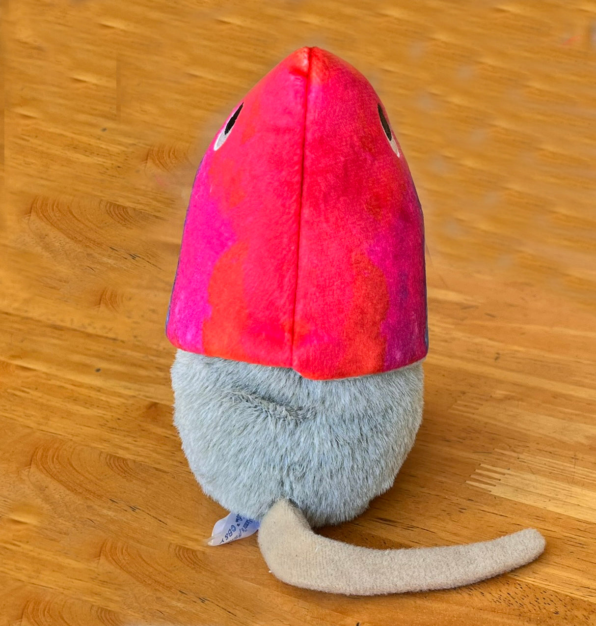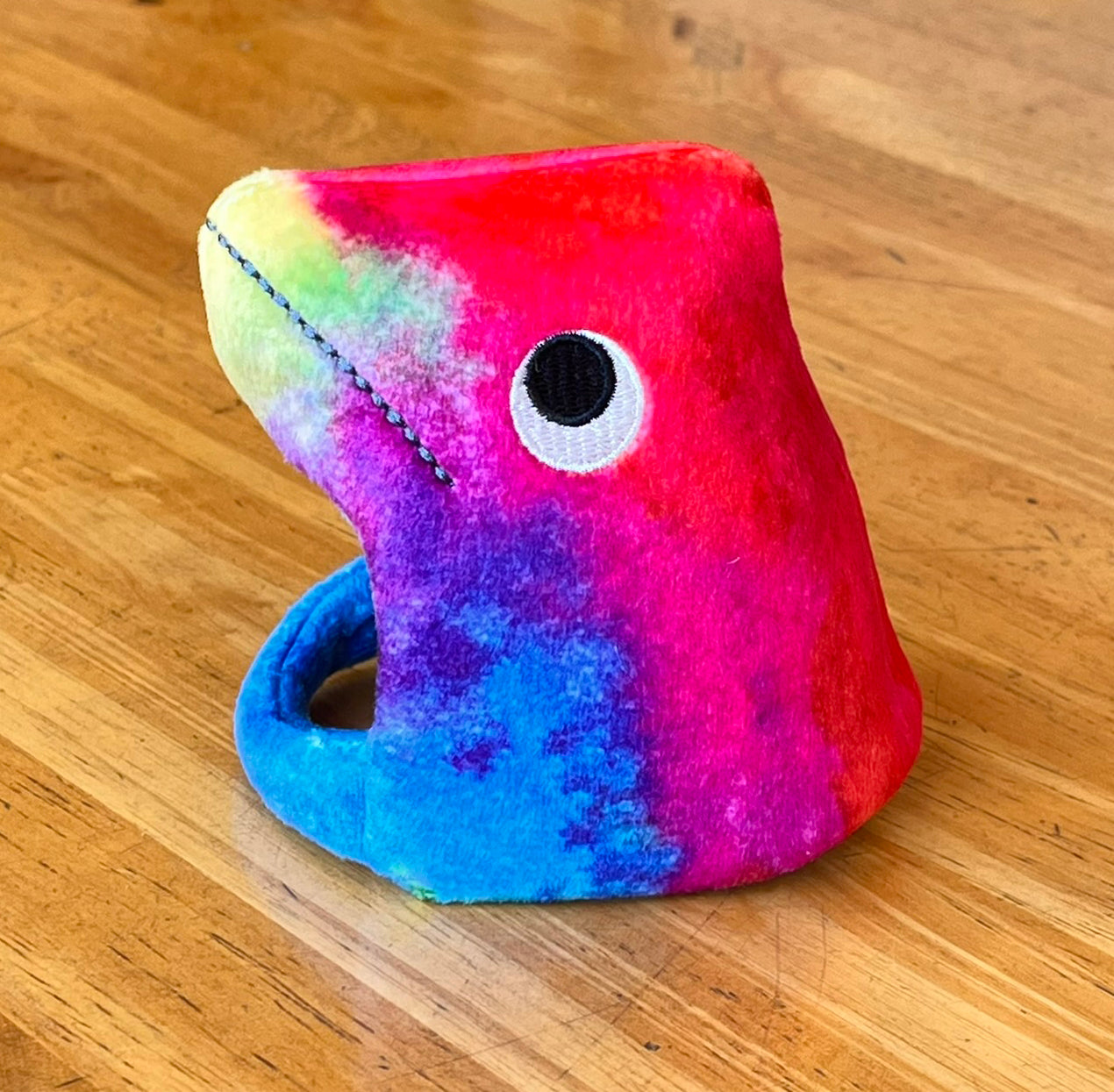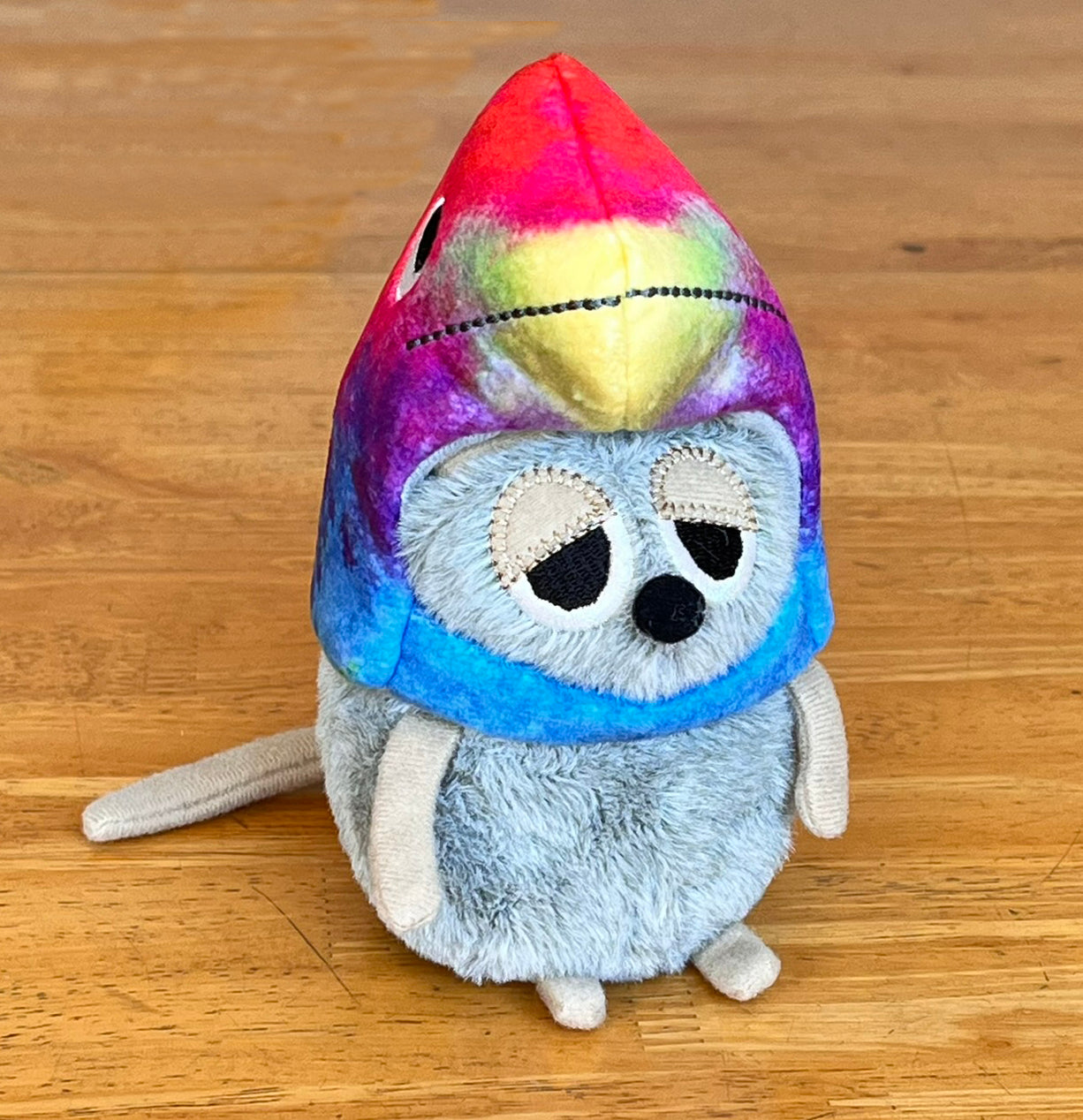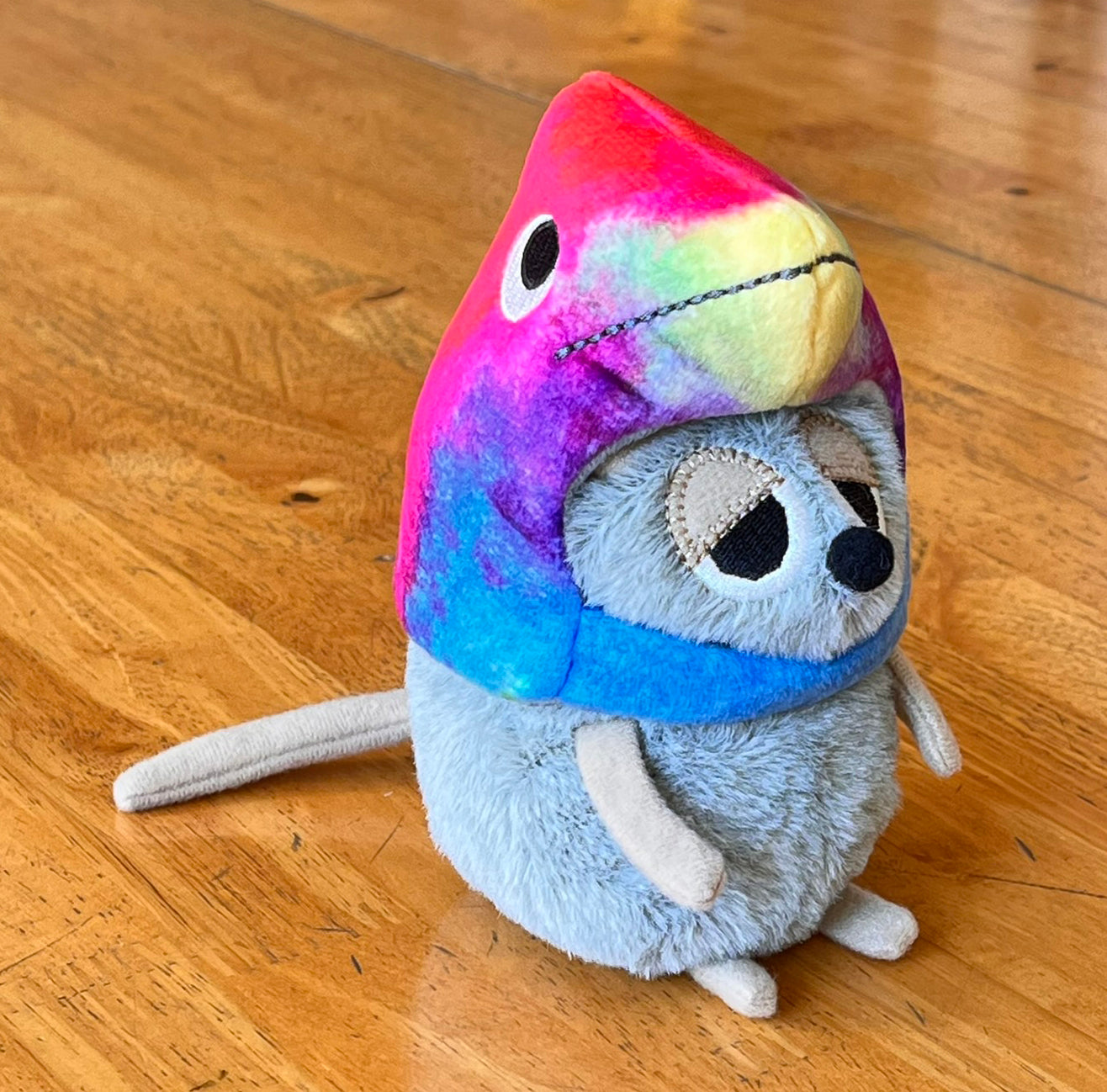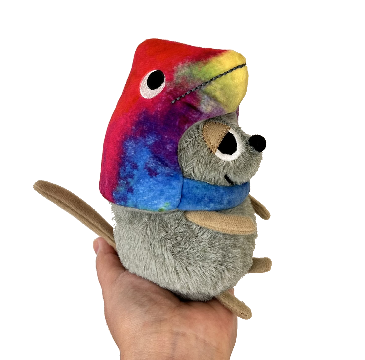 『フレデリック』のぬいぐるみです。脱いだり着たりできる虹色のカメレオンのかぶりものが、鮮やかで目を惹きます。レオ・レオニの絵本のコラボが楽しめます。
