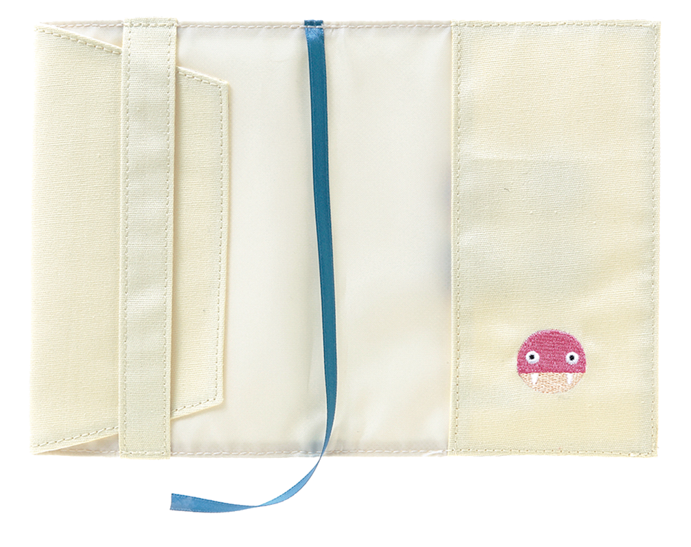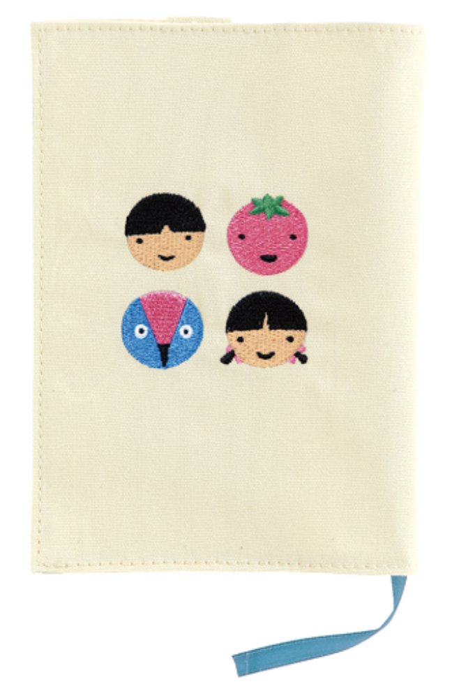 五味太郎のかわいい顔のイラスト刺繍のブックカバーです。かわいい顔は中面にも!お気に入りの本をお気に入りのブックカバーで装っておでかけしては。【生地】表:綿、裏:ポリエステル、しおり付き、