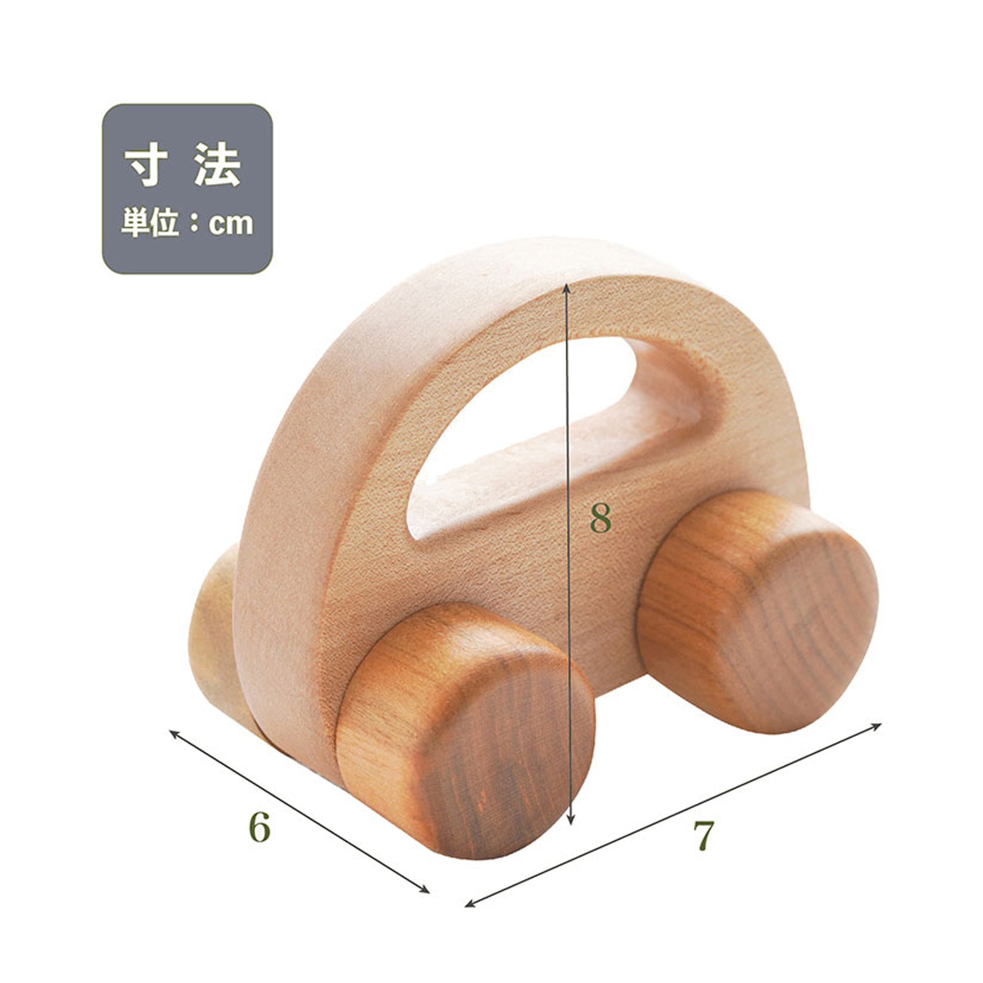 つるつるの手触りが気持ちいい、かわいい木の車のおもちゃです。